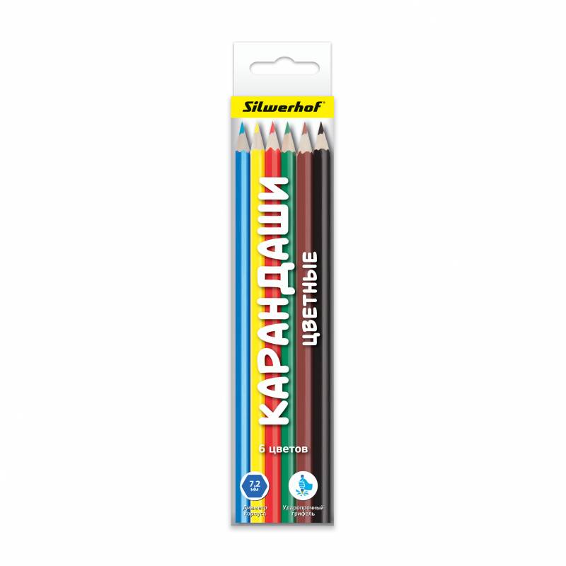 Карандаши цветные Silwerhof 134206-06 Народная коллекция шестигранные d=2.65мм 6цв. коробка/европод.