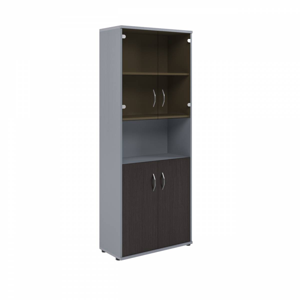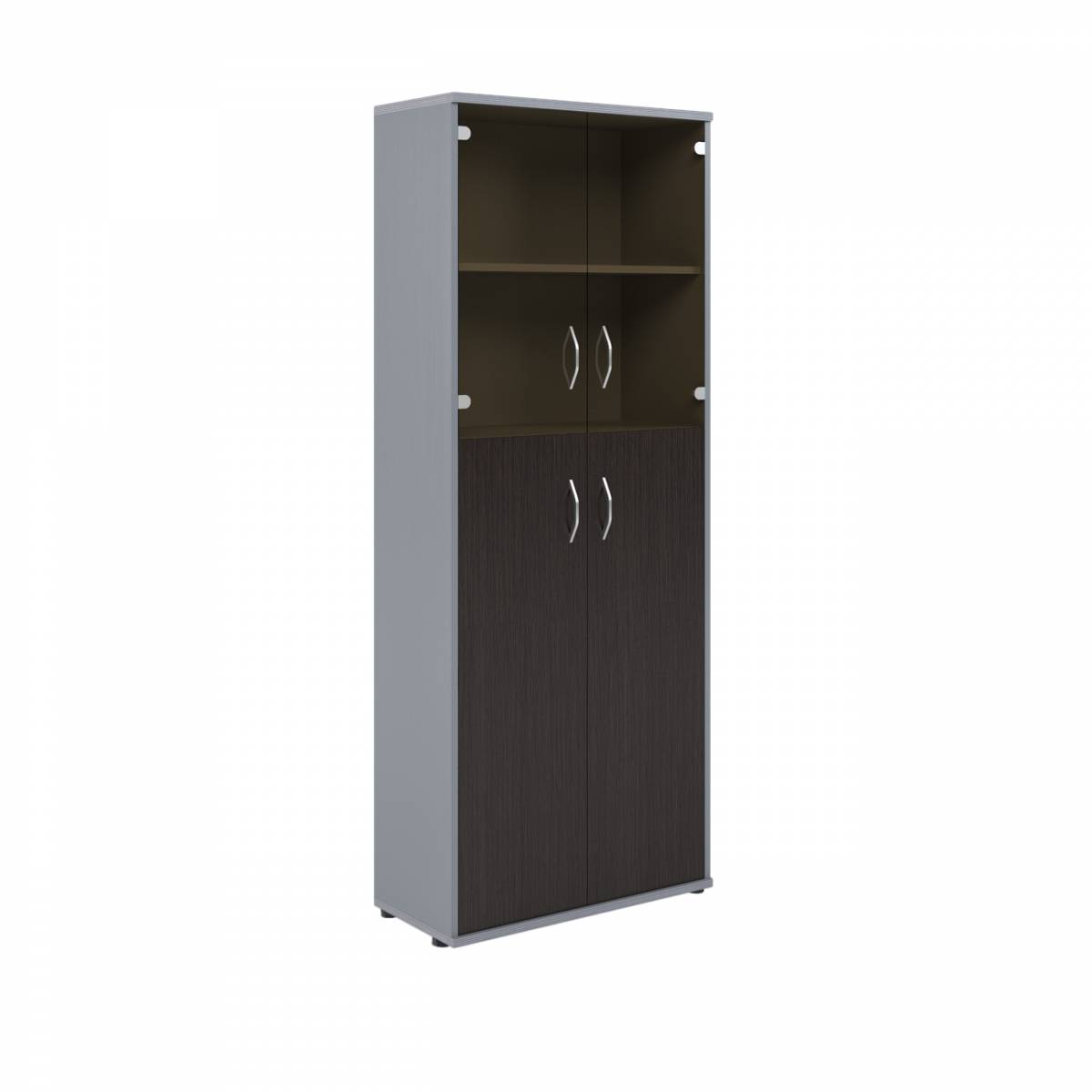 Шкаф комбинированный малыми стеклянными и глухими дверьми СТ-1.4 Венге/Металлик 770*365*1975
